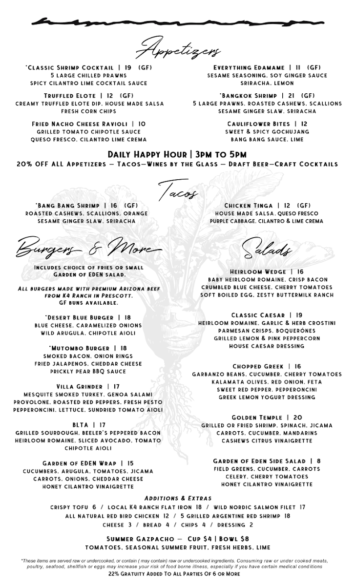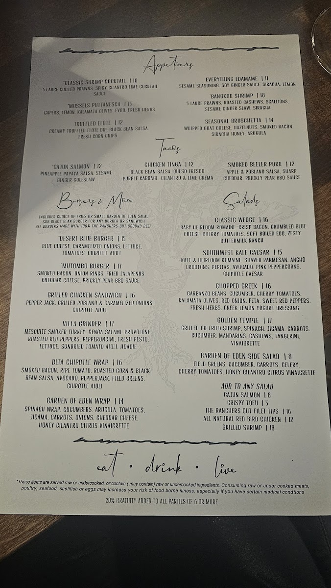 Marinated & grilled Local K4 Ranch flank steak, southwest chimichurri, truffle fries, Pecorino Romano, black garlic ranch