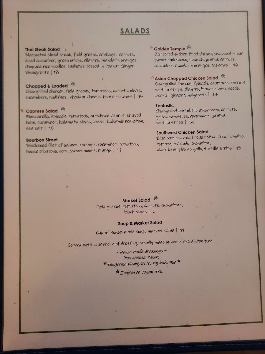Field greens, cucumber, carrots, celery, cherry tomatoes, and honey cilantro vinaigrette.